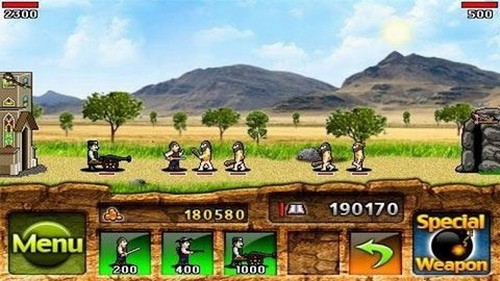 1.从蛮荒时代,到现代武器,再到未来士兵,命令你的军队购买士兵和武器来守卫领土,进化升级,直到摧毁敌人的堡垒。