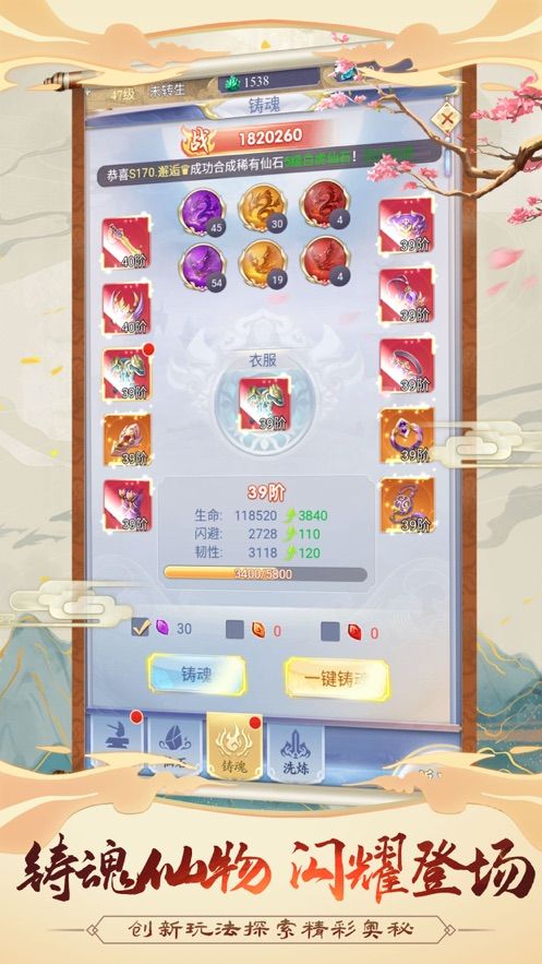 3.在游戏中选择锻造的法宝装备,在洞府的改造修炼中选择适合自己的法宝。