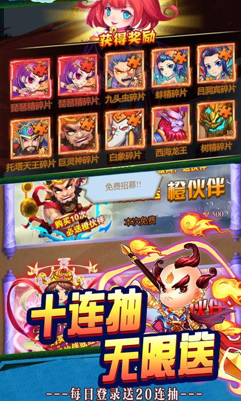 1.刚开始可以得到上万的金元宝。可以用这些金元宝直接购买稀有武将,让你的西游阵容更加强大。