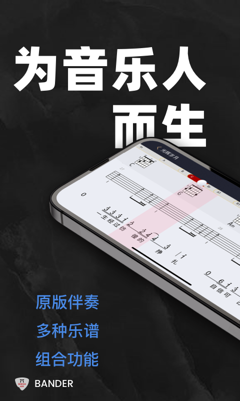 同时板凳音乐支持吉他、鼓、键盘、钢琴四种主流乐器的线性乐谱显示;