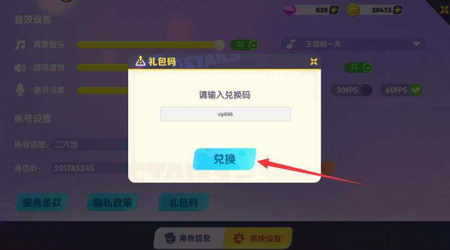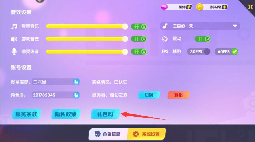 3、在设置功能中,点击【礼品码】如下图箭头所示;