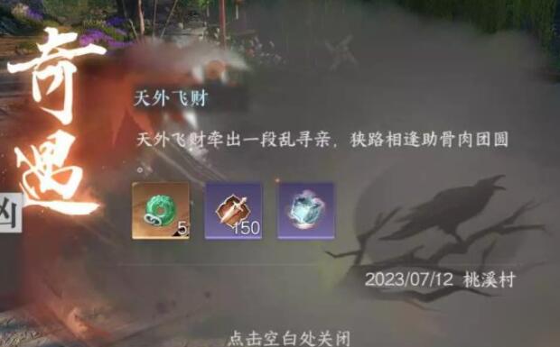 4、冒险奖励:剧情点8个、绑玉5个、风云令点数180点、静凝丹3颗、图鉴集《天外之物》