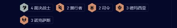 4个法官战士,2个潜行者,2个指挥官,3个德玛西亚,3个诺克斯。