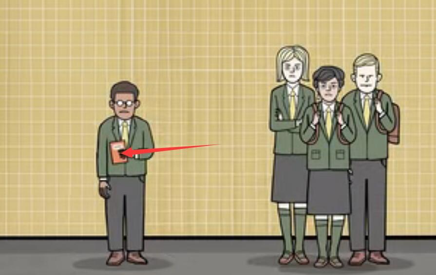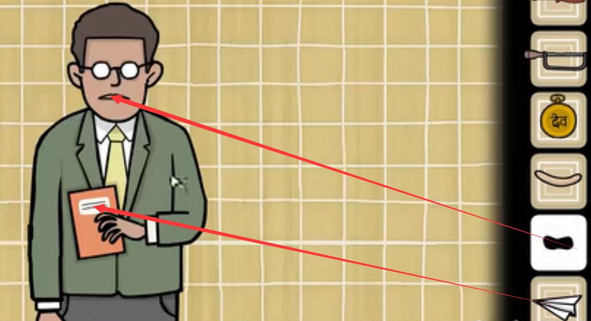 12、之后,鸟蛋会落到学生头上,书包会掉到地上,点击笔,把笔放在尺子上,即可得到书本的密码;