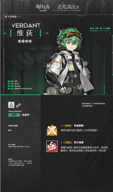 1、维迪是明日方舟中颇具特色的绿色四星干员;