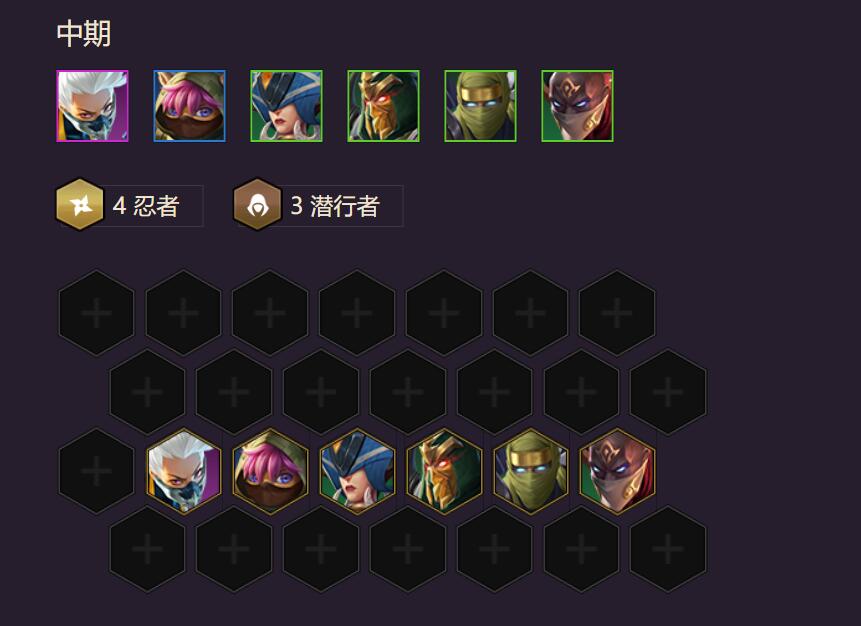 中期可以升级到6人,继续稳定血量。如果能得到4个忍者+3个盗贼的阵容,实力就能充分发挥到极致。