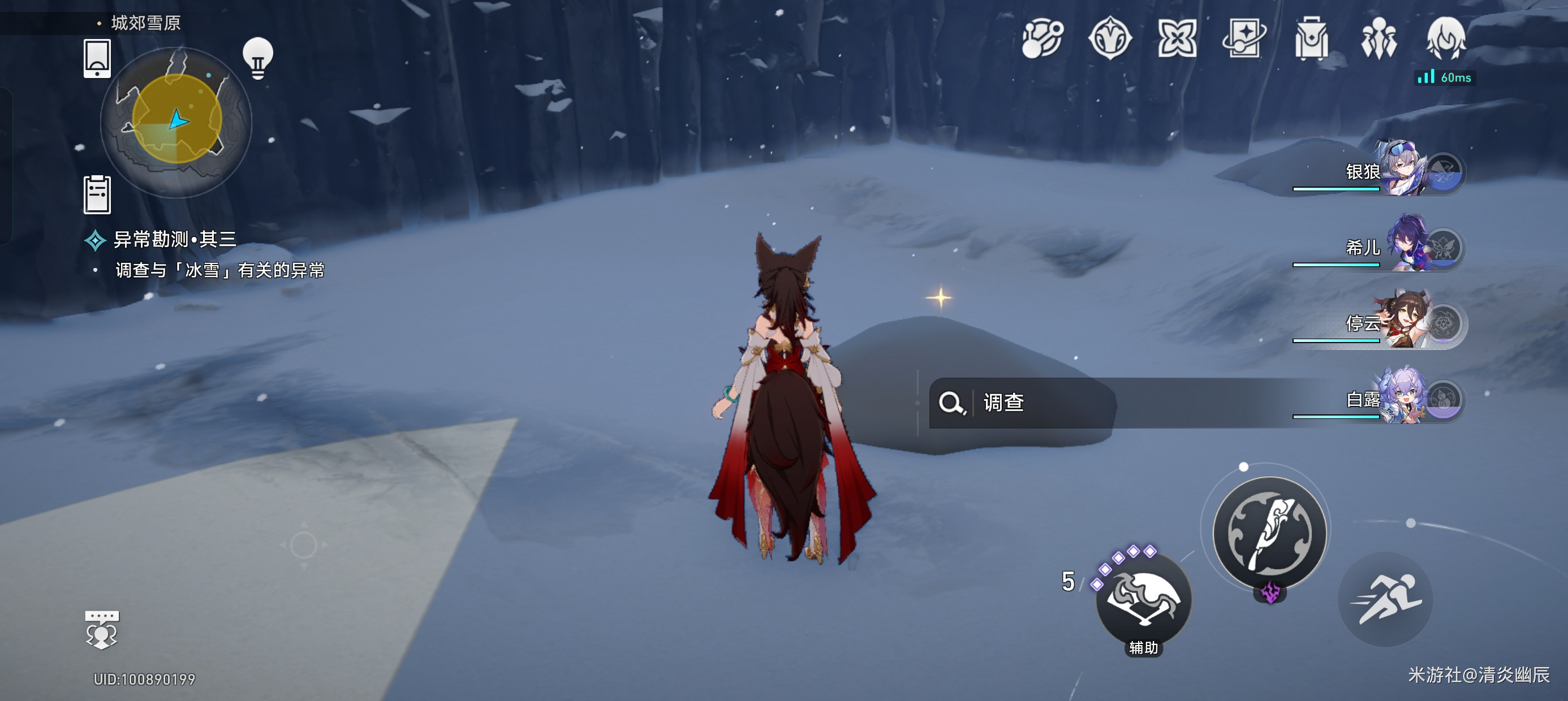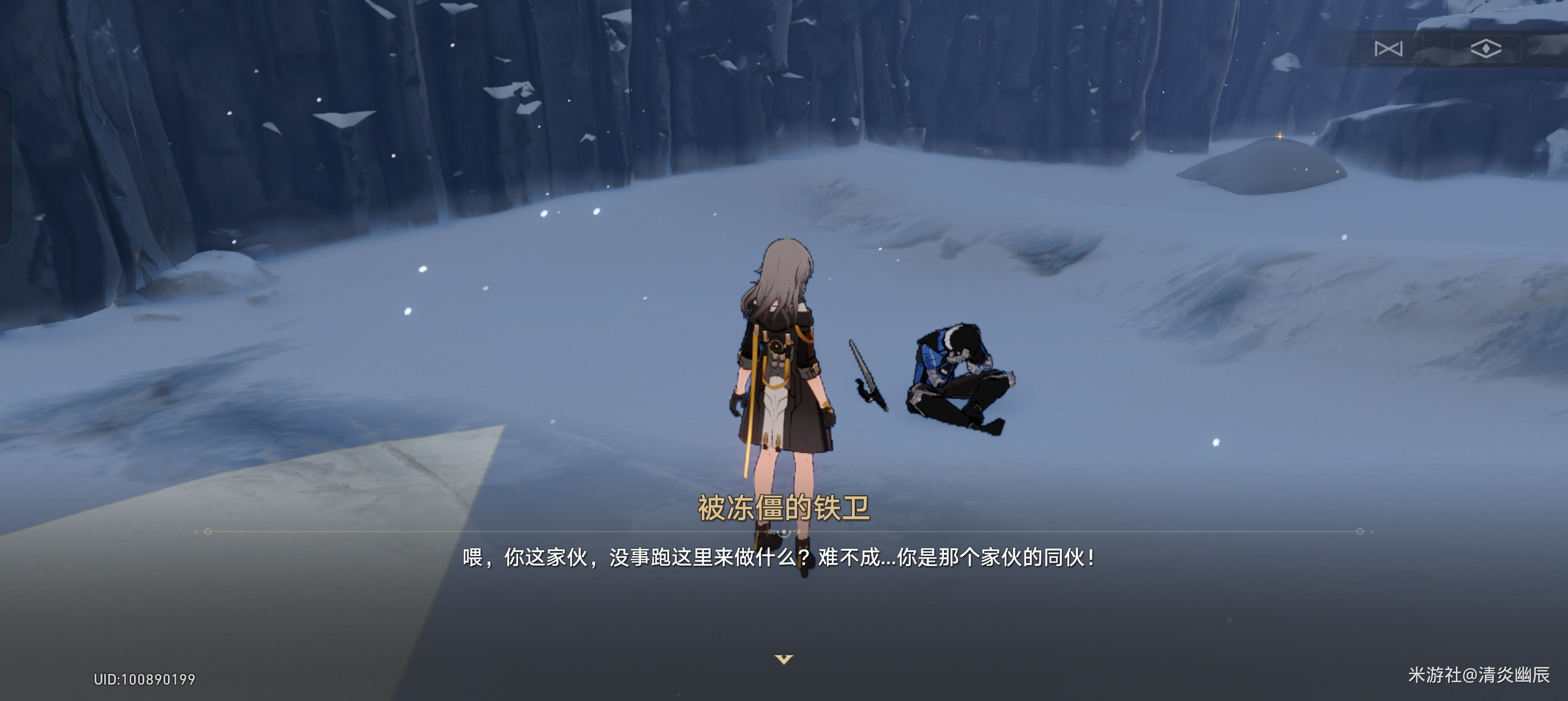 4.然后玩家需要与铁卫对话,然后需要再次调查铁卫对面的雪堆;