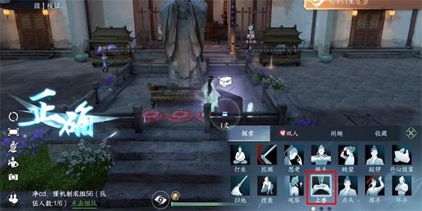 2.到达后需要前往夫子庙的雕像,然后玩家需要使用烧香动作;