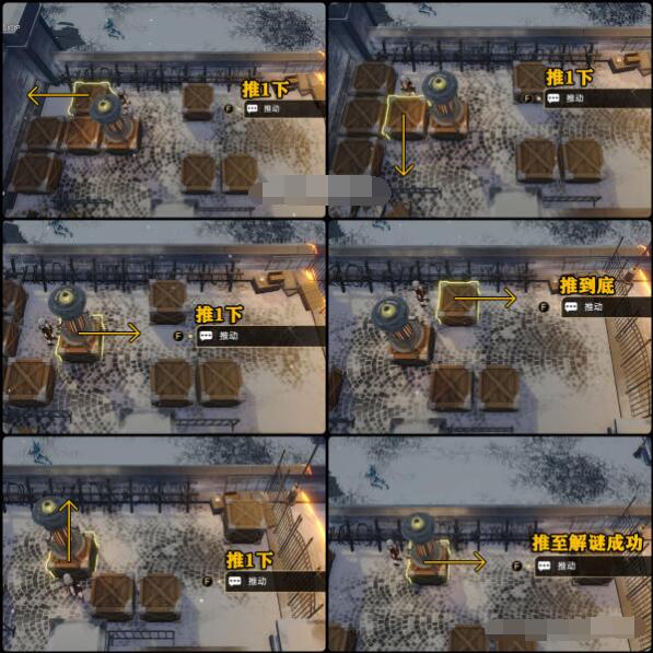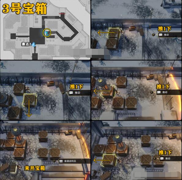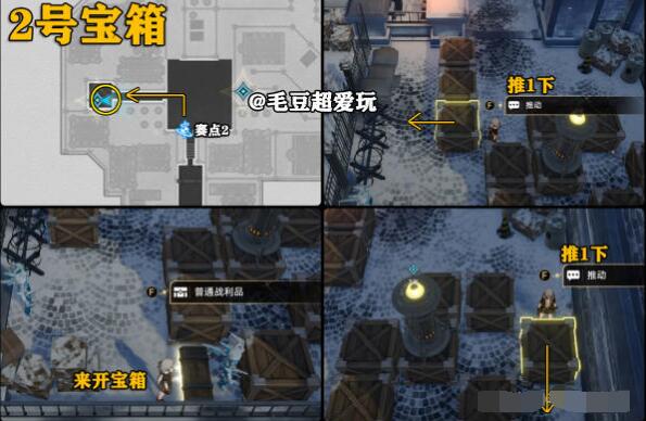 第二号宝箱:2号地图需要玩家解决推箱子的谜题。如下图推箱子;