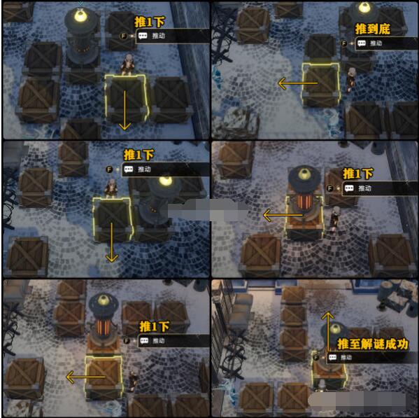 第三号宝箱:3号宝箱也需要解决推箱子的谜题。玩家可以按照下图的路线推动箱子;
