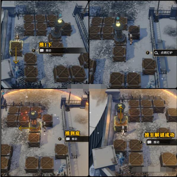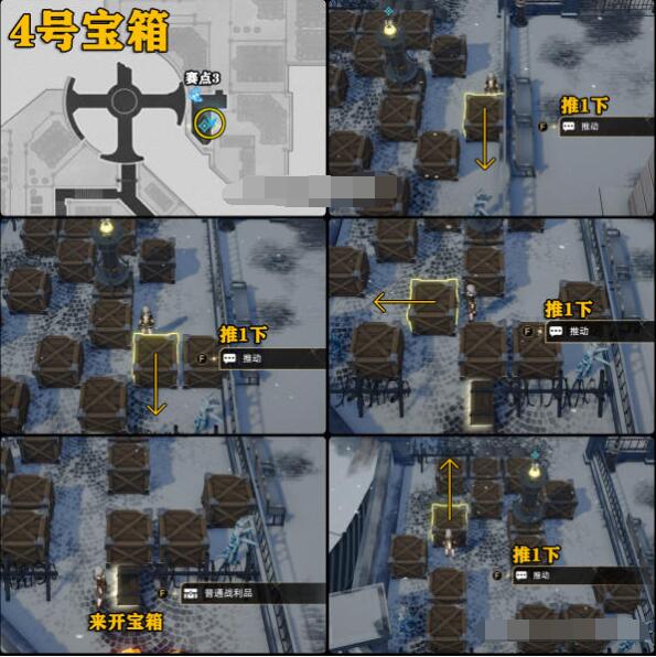 第四号宝箱:4号宝箱还需要完成推箱谜题。按照下图清晰地完成推箱子任务;