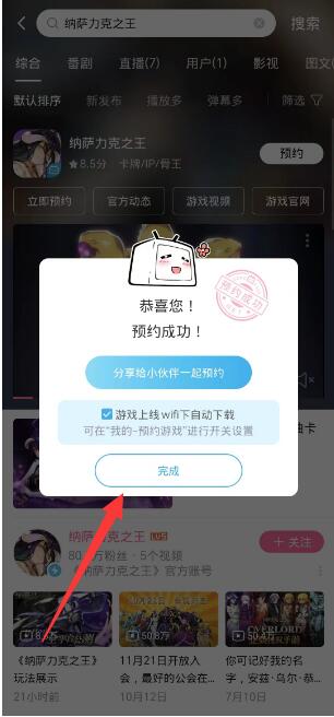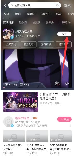 1、打开哔哩哔哩APP,在首页顶部搜索框输入【纳萨力克之王】;