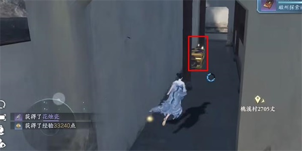 3、这时候你可以通过打破花瓶来获得奖励,然后转身就可以看到宝箱;