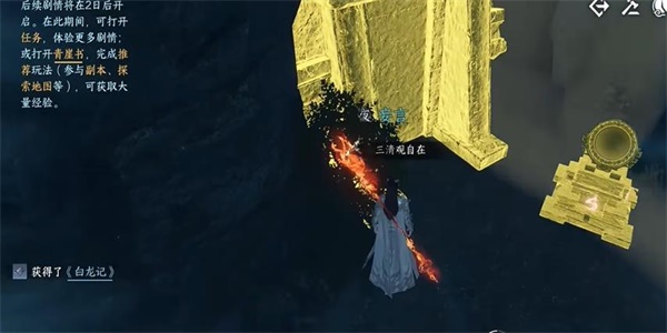 4、到达下图位置时,玩家需要捡起地上的白龙笔记并解锁机关,即可获得宝箱;