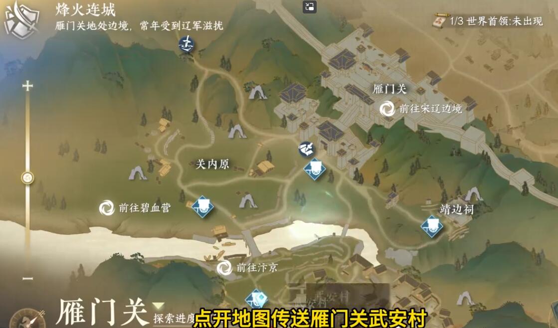 2、打开地图,瞬移到雁门关武安村所在位置;