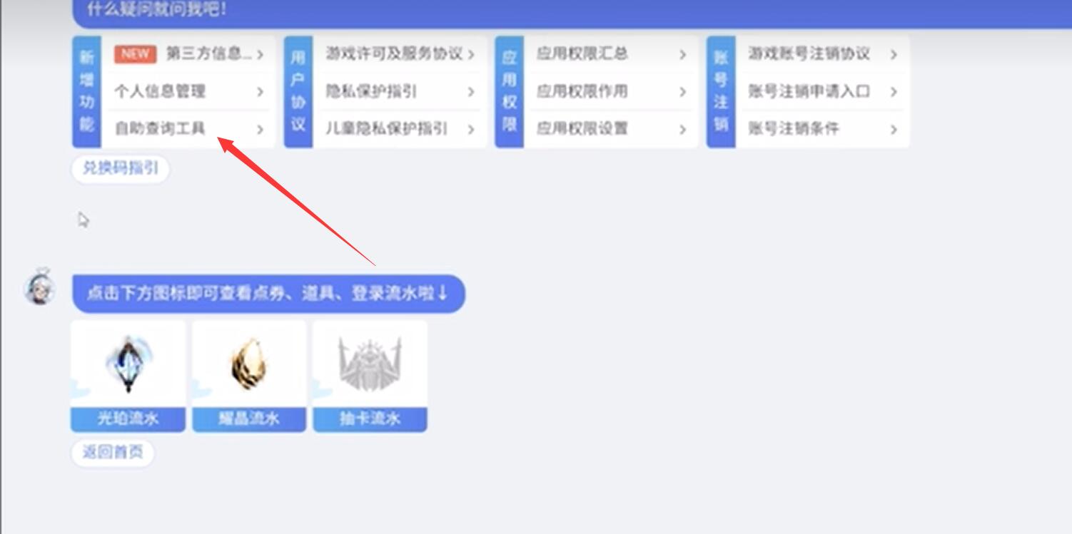 4、点击下图箭头所示问题,查询抽卡记录;