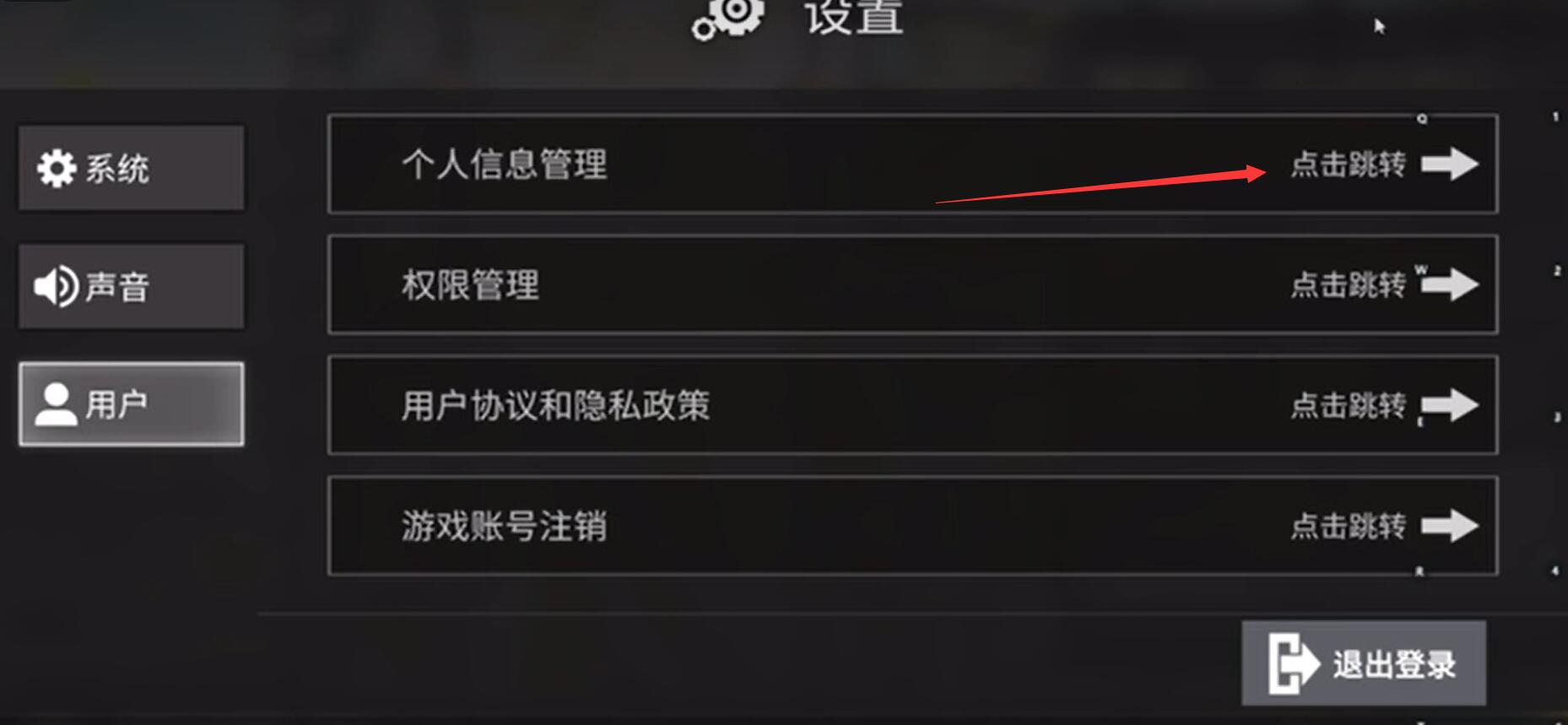2.切换到设置页面,选择【用户】并点击;