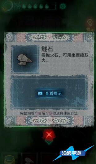 2.我们回到小路后,在路上拿到了打火石,点击城隍庙外的锅子,在石头堆中间找到了照片的一半,用打火石点燃了它。