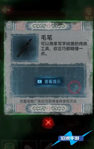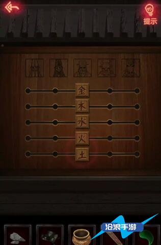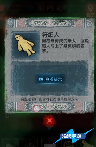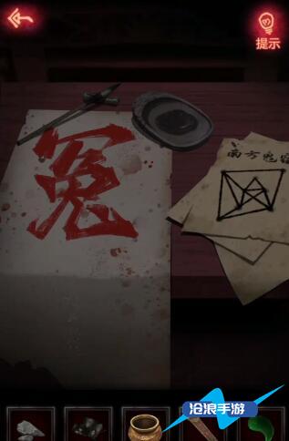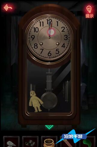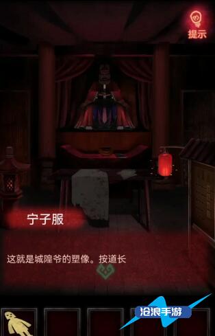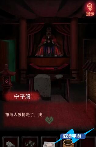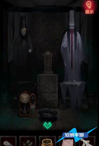 11、到城隍庙左侧的门口,取出令牌出现提示,根据提示调整时钟即可获得符纸人,按照前面的步骤将符纸人放在中间的桌子,然后单击中间的画来写标题。