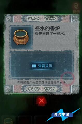 4.进入城隍庙,点击中间的桌子,在桌面上的银石路旁边得到一个空香炉,使用空香炉点击水箱即可得到水。