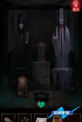 10.叔叔出来后,右边的门打开,就可以进去了。在这里可以看到黑白武昌。点击白无常手中的令牌即可获得,点击即可获得黑无常的丧杖。