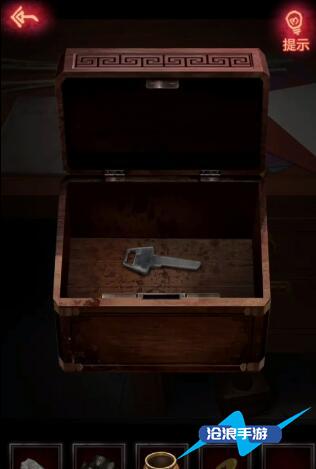 16. 点击桌子底部的盒子,你可以得到刷子,然后将两个饰品放在一起,得到一把没有牙齿的钥匙。