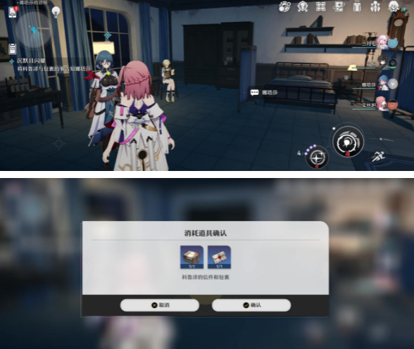 2、我们到诊所和娜塔莎对话,会给我们3个包裹送给3个人,获得一封信得知包裹是科鲁泽送的。