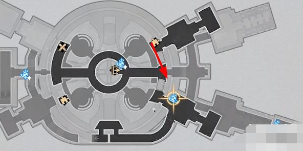 在控制中心一楼如图所示房间有个类似走迷宫小游戏,在终点门口地上有个光点,拾取即可获得第二张权限卡。