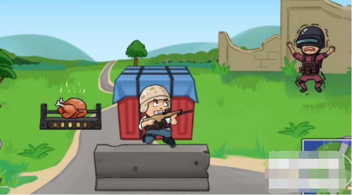 3.玩家将穿过空投背后,找到空投中的橡胶果,然后击败敌人。