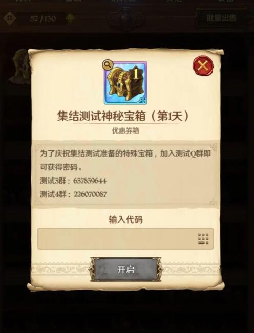 七人传奇光与暗之交战试营业纪念宝箱密码