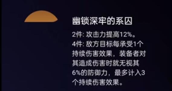4件套:装备后,该区域会受到1点持续伤害,并且可以无视敌人6%的防御能力。