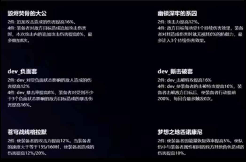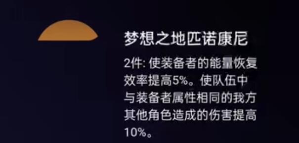 遗物分析:两件套可增加血量恢复速度5%,并增加队伍中同装备队友伤害10%;