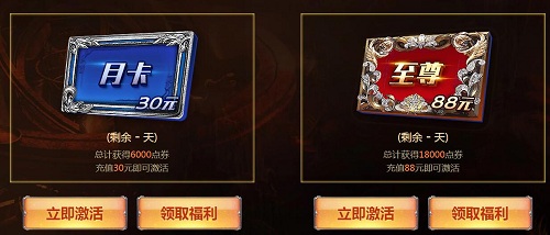 3.激活至尊月卡即可领取S13夜余辉神秘宝箱,每天领取600游戏点和200福利点。