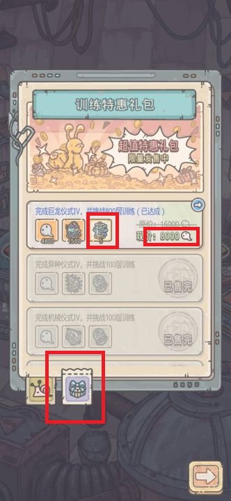 4.打开培训奖励大礼包。玩家完成巨龙五级仪式后,可以使用8000只蝌蚪购买礼包。礼包内含4800只蝌蚪、1500个宝箱、5个龙族基因碎片。