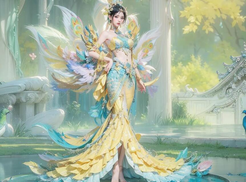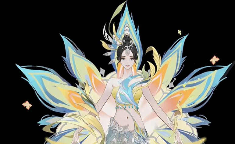 4.设计理念:这款皮肤以傣族孔雀公主为设计蓝本,孔雀在身后张开尾巴的图案;