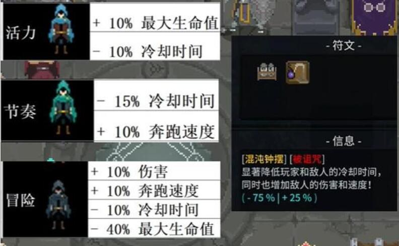 类型分析:该类型需要通关后购买混沌摆。对于斗篷,您需要选择三个选项之一:活力、节奏和冒险。