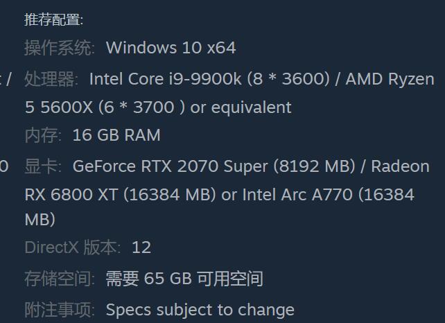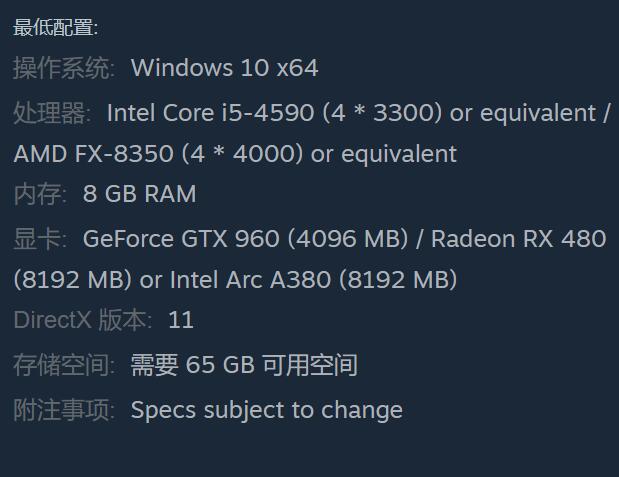 显卡:GeForce GTX 960 (4096 MB)/Radeon RX 480 (8192 MB) 或Intel Arc A380 (8192 MB)