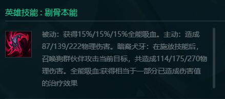 1.被动技能:获得15%/15%/15%全方位吸血效果;