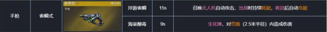 4.雀鲷风格:召唤无人机自动攻击,进入战斗时持续消耗能量,恢复后自动回充。生化炸弹会在范围内(半径2.5米)造成伤害。