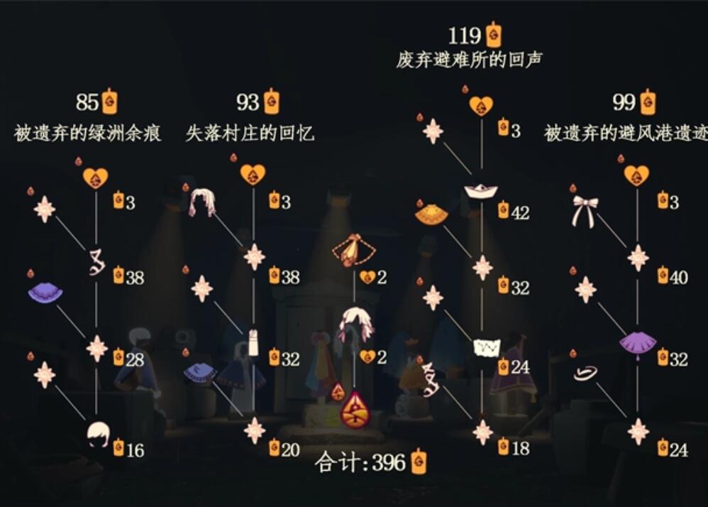 1.归巢季节总共可获得396支蜡烛,其中每天可获得6支;