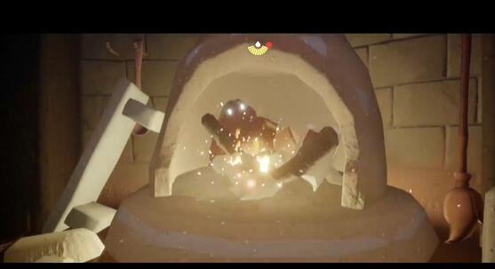2.到达祖先所在地后,跟随他前往山洞,使用蜡烛点燃熔炉解锁服装;