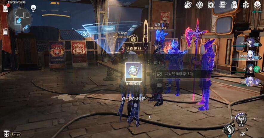 1、前往旧武器测试场,在如下图位置找到【庆典福利分发员巴里】;