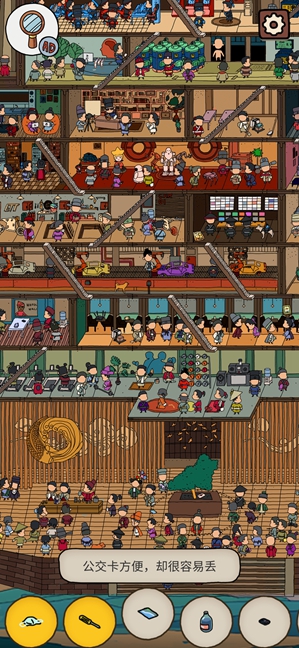 1。根据提示,我们在找公交卡,但是提示并没有给出公交卡掉在哪里的信息,只能放大屏幕仔细看。