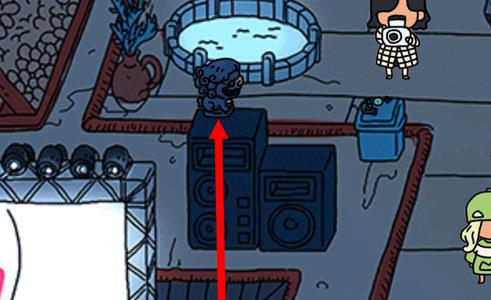 2。石狮在地图左下角大广告牌后面的柜子上。颜色和柜子差不多,需要仔细找。