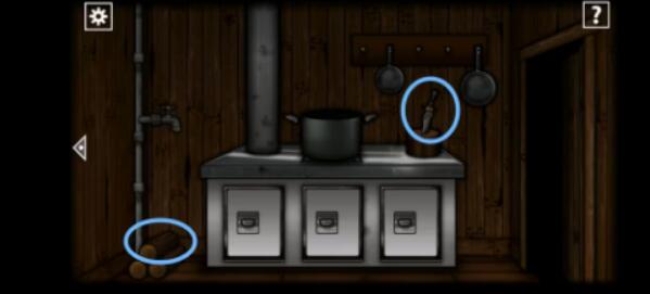 2。去厨房拿把匕首放在炉子上,在地上拿块木头。