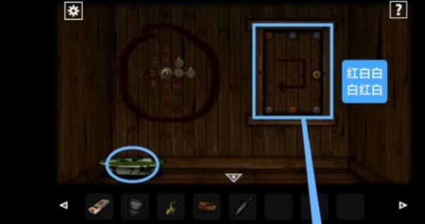 6。进入暗室,按红白白红的顺序点击衣服,就能拿到钥匙。