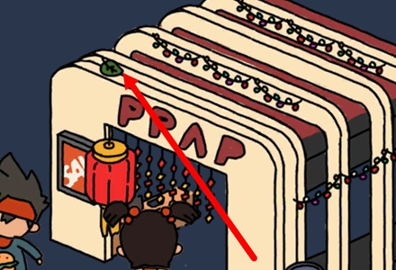 3。叶子在地图右侧汉堡店旁边的“ppap”过道顶上,第一个过道顶上有一片叶子。