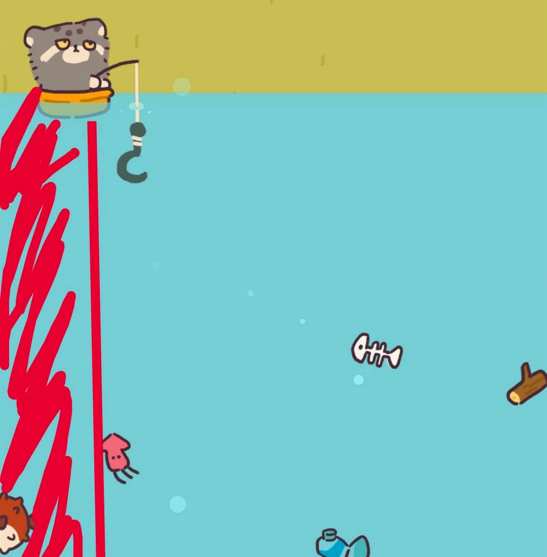1。红河豚容易出现在游戏界面左侧,钩子够不到盲区。