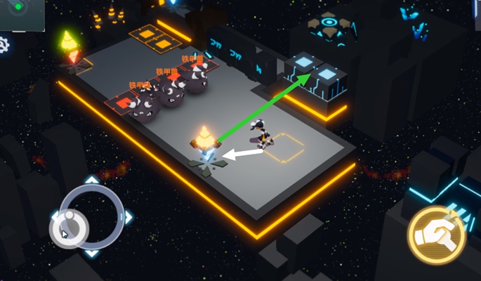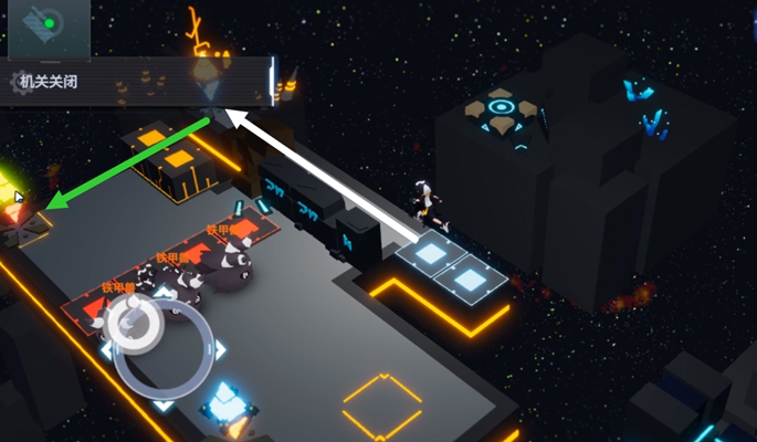 2。跟着白色的引导,然后点击石头关闭机制,然后跳到底部。当你到达底部时,打开机械装置。