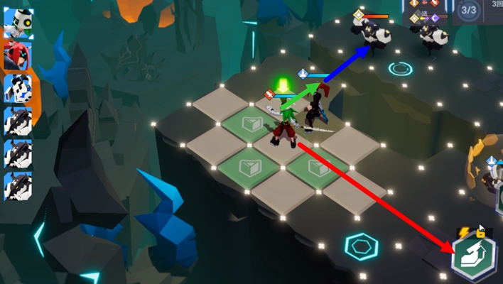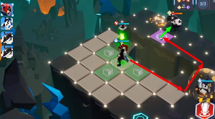 4。红色因为祖玛的1技能加成,可以直接移动到目标然后攻击敌人。